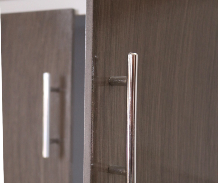 ALACENA DE MADERA OKUME 120CM- COLOR ROBLE CON JALADERAS DE ACERO INOXIDABLE