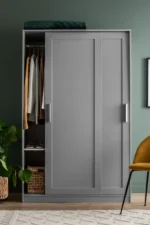 Este armario es realmente multinacional para almacenar sus artículos para el hogar en su dormitorio. El armario izquierdo es especialmente para almacenar su ropa, que se separa en 2 partes para hacer su ropa bien organizada que permiten almacenar ropa de cama o cosas del hogar.