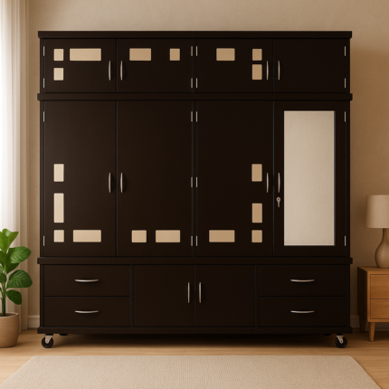 Este armario es realmente multinacional para almacenar sus artículos para el hogar en su dormitorio. El armario izquierdo es especialmente para almacenar su ropa, que se separa en 2 partes para hacer su ropa bien organizada que permiten almacenar ropa de cama o cosas del hogar.