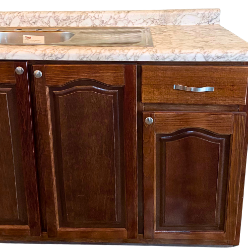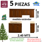 El modelo Cuarzo está fabricado en madera de pino americano, reconocida por su resistencia, durabilidad y belleza natural. Su elegante acabado en color nogal aporta un toque cálido y sofisticado a cualquier espacio, creando un ambiente acogedor donde preparar tus recetas favoritas será un verdadero placer.