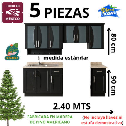 Esta Cocina Integral Clásica de 5 Piezas, fabricada en madera de pino americano, está hecha para transformar tu hogar con ese estilo acogedor que nunca pasa de moda.