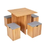 Disfruta de tus comidas en  casa o restaurante con este sencillo, moderno y elegante conjunto de comedor, ideal para recién independizados o familias pequeñas para 4 personas. Líneas limpias y ángulos mezclan hermoso color, es ideal para el hogar. El diseño compacto hace que los 4 bancos puedan encajar perfectamente debajo de la mesa, por lo que le ayudará a ahorrar espacio cuando no se utiliza y así puedas ahorrar espacio.