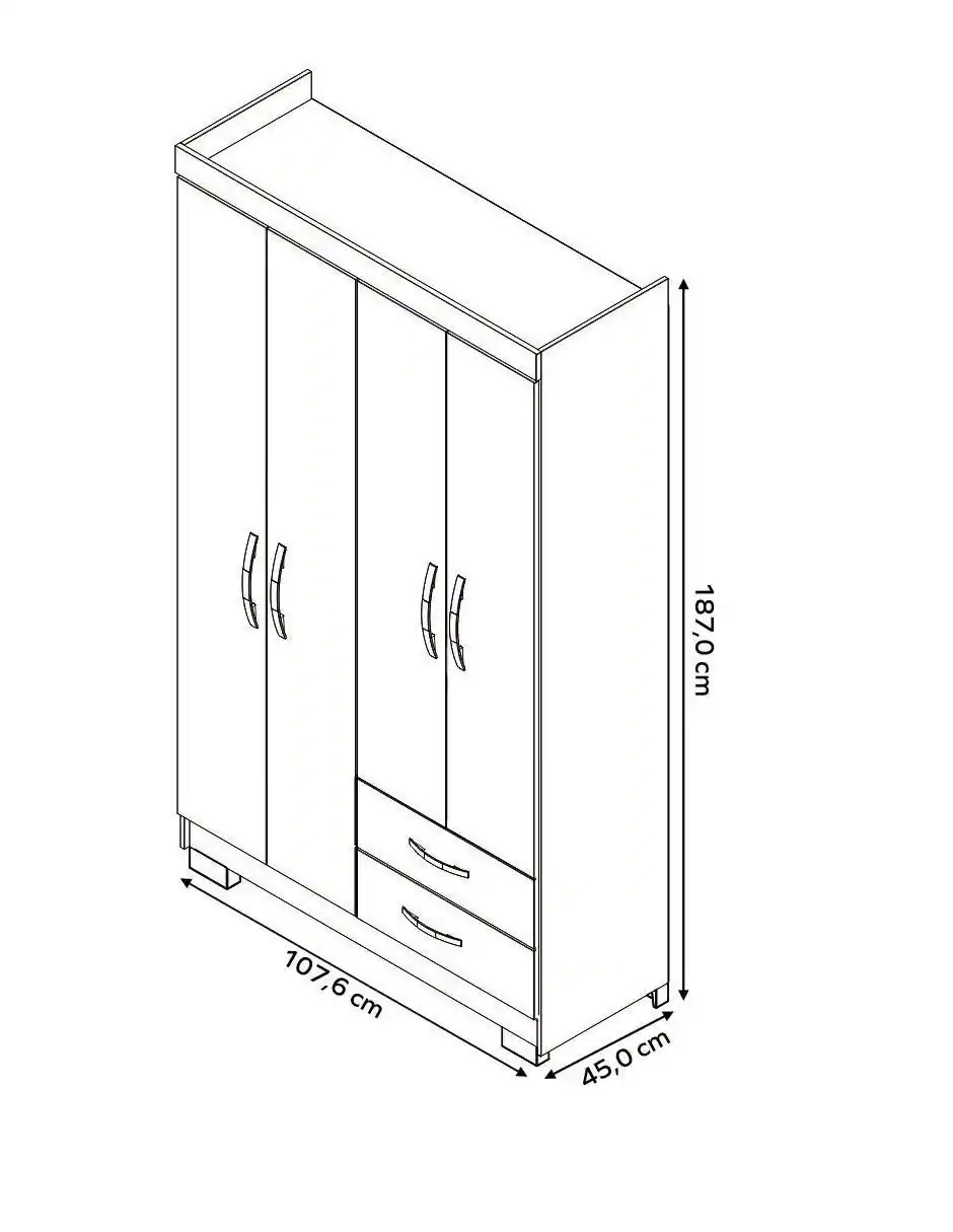 Con 3 puertas y 2 amplios cajones inferiores, ofrece el espacio ideal para organizar ropa, accesorios, calzado o lo que necesites mantener en orden. Su interior está diseñado para optimizar el almacenamiento sin perder estética.