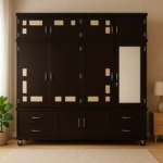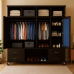 Imagina abrir las puertas de tu habitación cada mañana y ver todo perfectamente organizado: tus prendas colgadas con estilo, tus zapatos bien alineados, tus perfumes en su lugar y hasta tus cobijas listas en la parte superior. ✨ Este ropero color chocolate con aplicaciones de tacto piel convierte esa idea en realidad, combinando diseño moderno, gran capacidad y funcionalidad total.